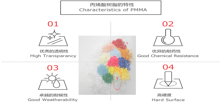 PMMA 樹脂主要由甲基丙烯酸酯 (MMA) 組成,具備清晰的透明度及高光澤等特性,以其出眾外觀贏得「塑料皇后」的稱號,還提供穩(wěn)定的物理、化學、光學及電氣性質。三菱化學是全球最大的 PMMA 樹脂供貨商,除了能以樹脂形式供貨,也供應適合導光板的片材。這種材料廣泛用于電子面板、機械零件、鐘表表面、車燈、電信設備、絕緣零件、太陽眼鏡、食品和水接觸材料、化妝品容器及玩具,符合 RoHS、REACH SVHC、UL 及多種國際標準,適合各種應用使用。